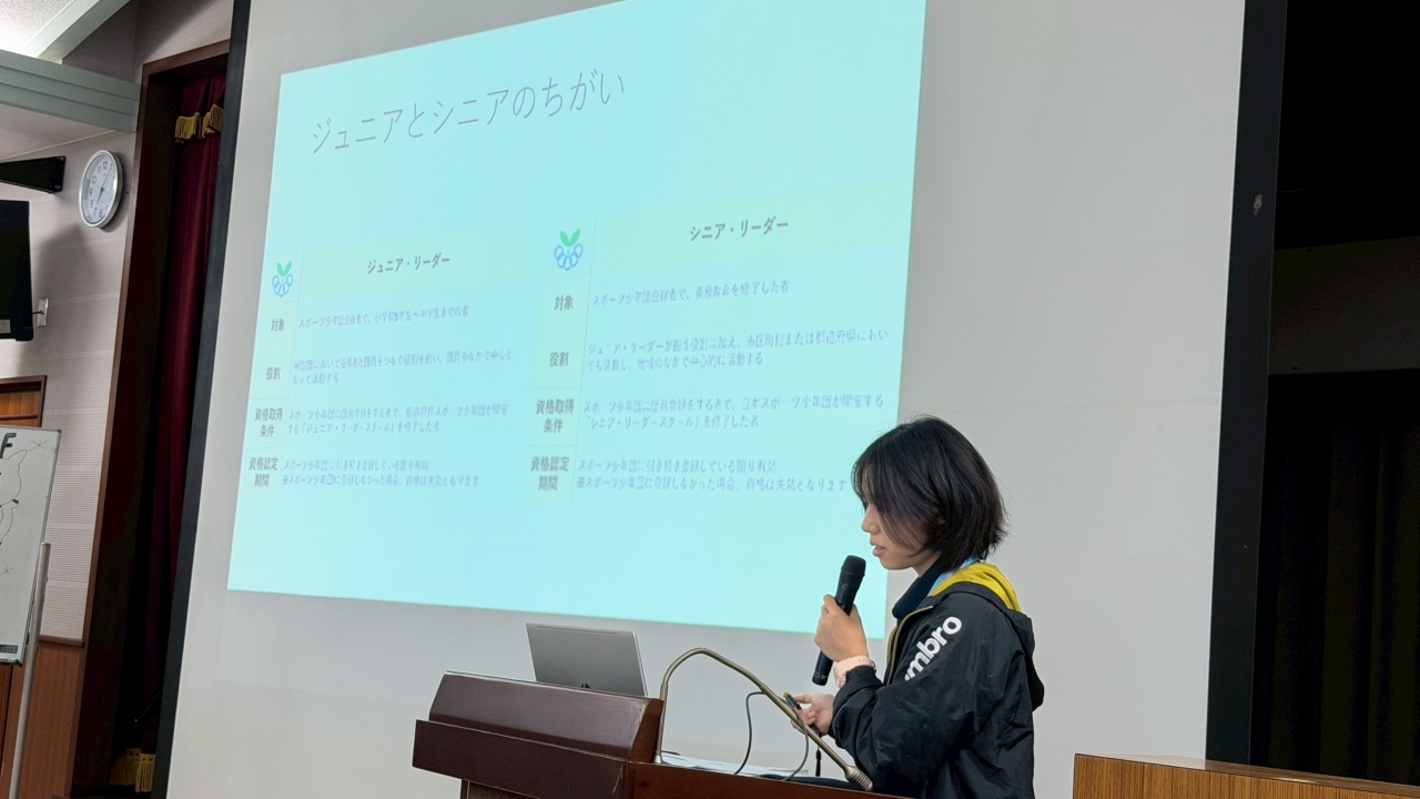 講義は、「スポーツ少年団とは」「リーダーとは」「シニアリーダーについて」「理想のリーダーとは」について副本部長とリーダー2名に講義していただきました。みなさん講義にしっかり耳を傾けメモをとっていて真剣な様子がみられました(^^)/