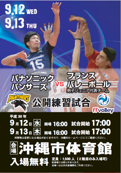 【ご案内】パナソニックパンサーズ VS フランス男子ジュニア代表チーム 公開練習試合