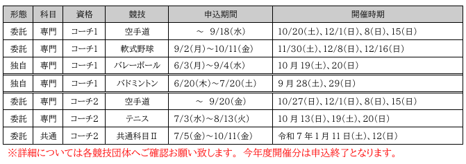 令和7年度コーチ1・2養成講習会の開催について