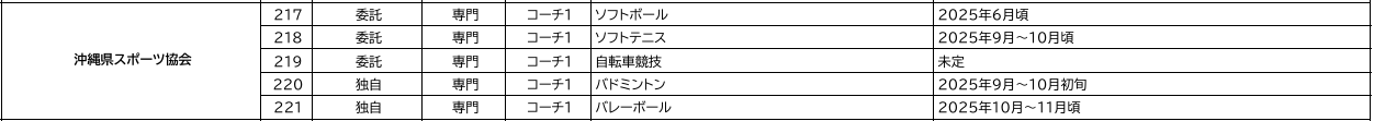 ※コーチ1とコーチ2の養成講習会の開催(沖縄県内)については各競技団へお問い合わせください。→ 加盟団体広場